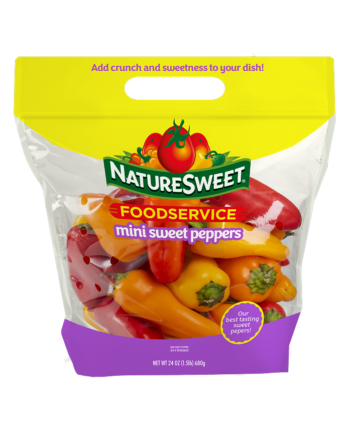 NatureSweet® mini peppers are sweet, colorful, and hand-picked to ensure peak ripeness and exceptional quality. Whether you eat them fresh or cook with them, our peppers are always satisfying.